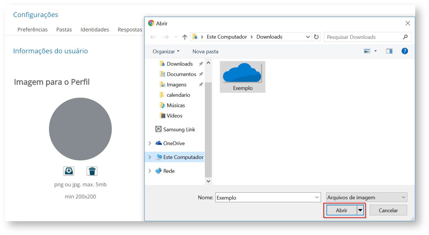 - Para colocar a foto, clique na opção “1“, e selecione a imagem que deseja e clique em “Abrir“: