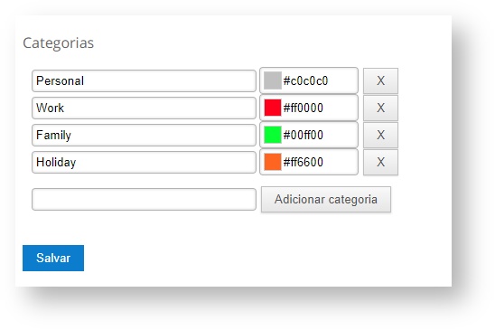 Funciona como as etiquetas do e-mail, o usuário pode colocar as categorias de acordo com a importância das datas: