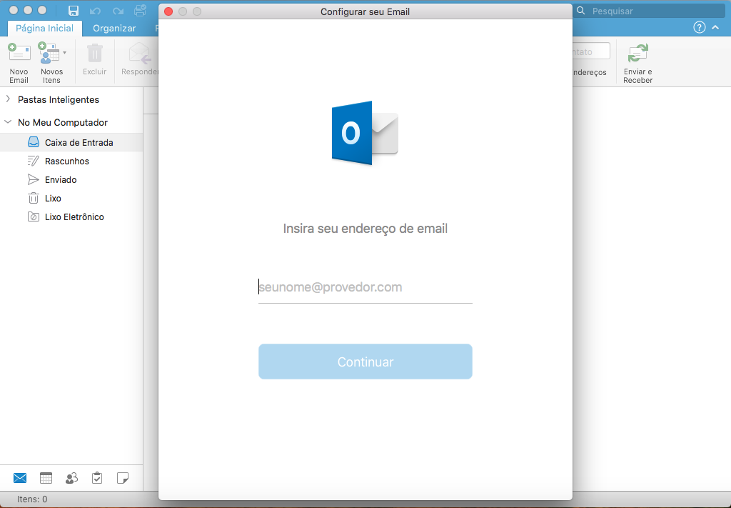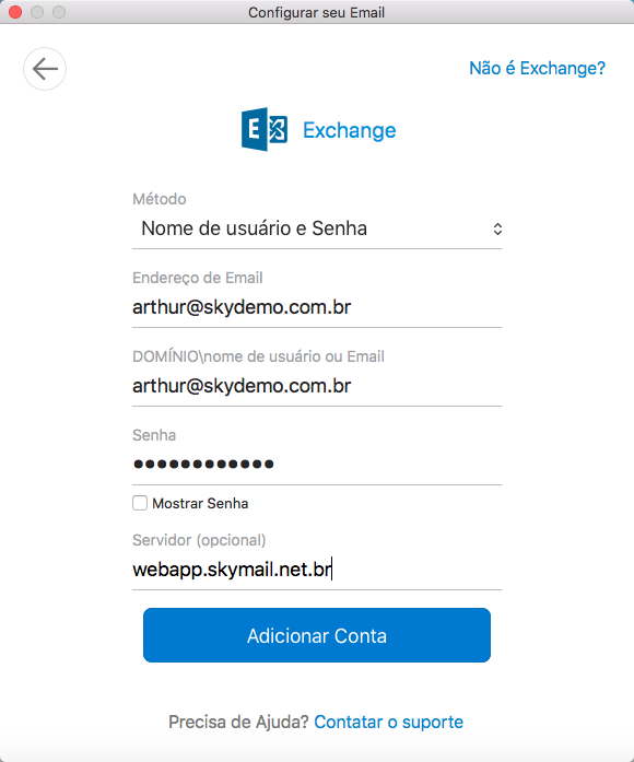 - Endereço de e-mail: seu e-mail completo seguido de @dominio.com.br