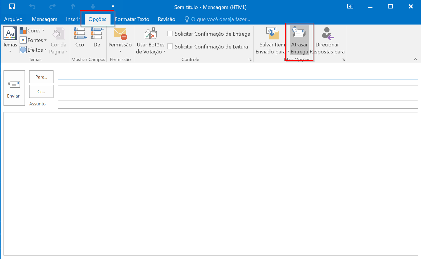Na aba opções, clique em “Atrasar entrega”: