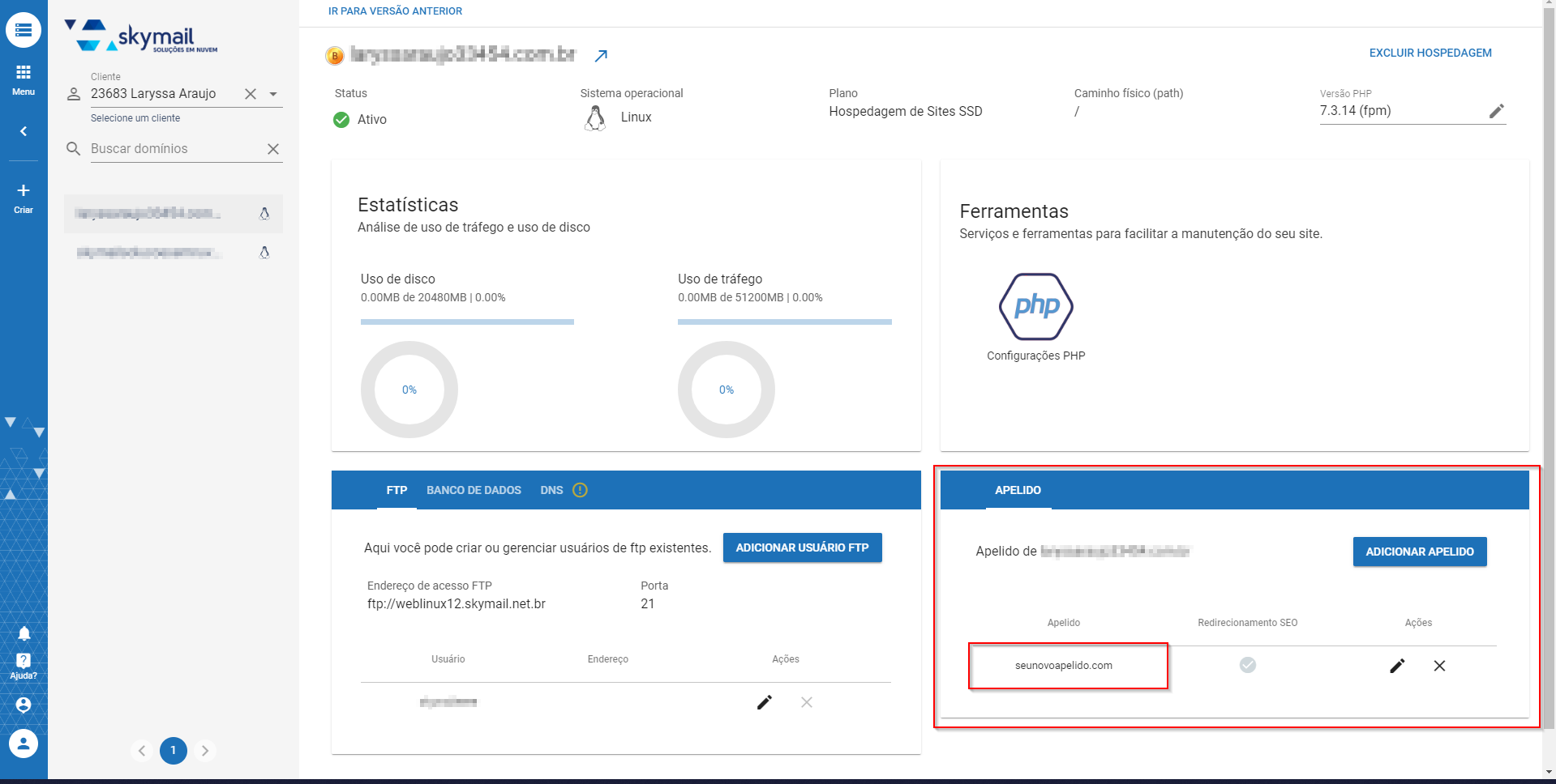 2 – Clique em “Hospedagem”, localizado no canto superior esquerdo do painel: