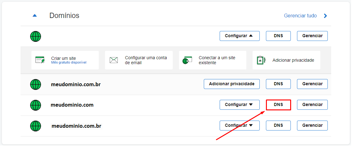 Nessa janela, será possível visualizar as entradas de DNS, será necessário adicionar as seguintes entradas para apontar o DNS para a Skymail: