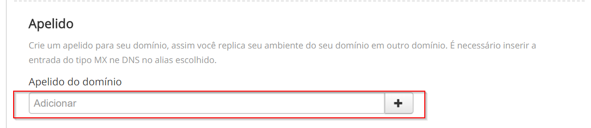 Insira o domínio que deseja usar como apelido e clique no ícone “+”.