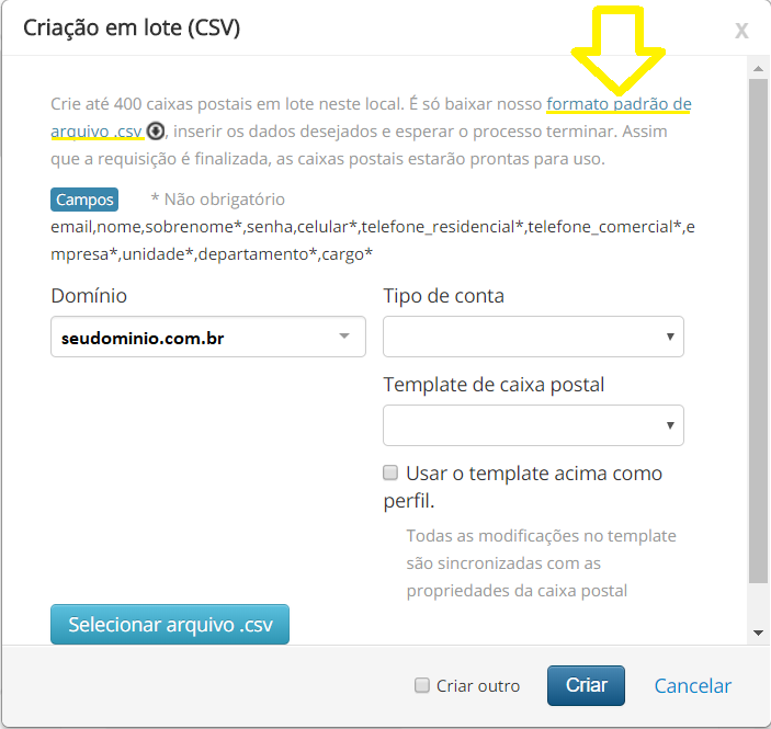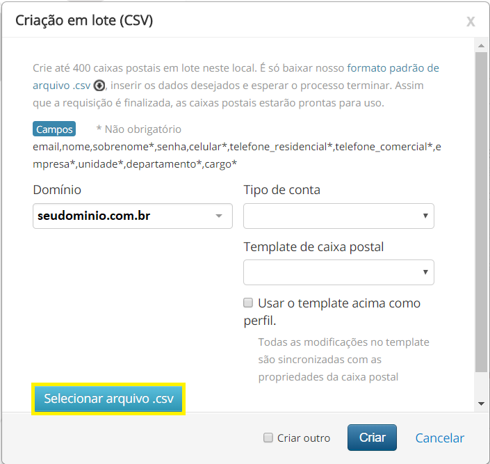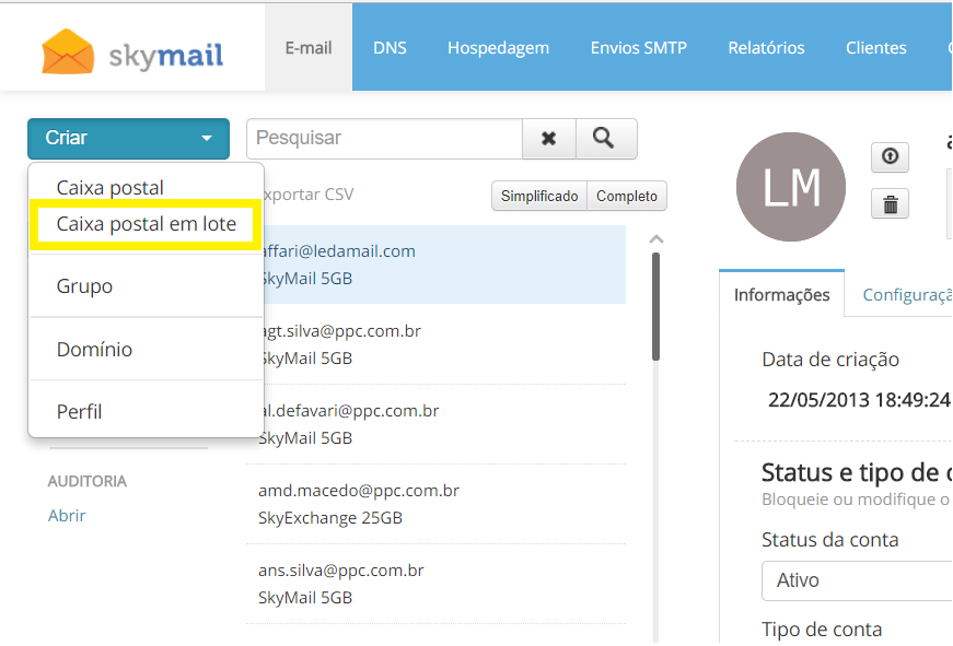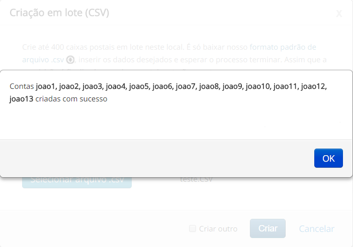 A criação em lote está disponível em seu painel de controle, nessa etapa você já recebeu as credenciais de acesso ao painel. Clique aqui para acessar o painel de controle.