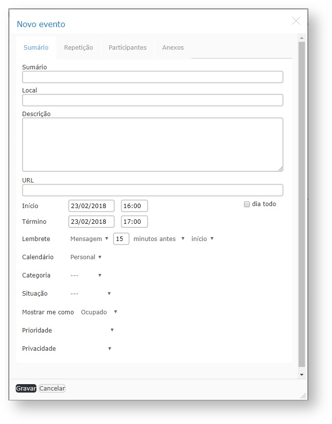 Criar eventos no calendário