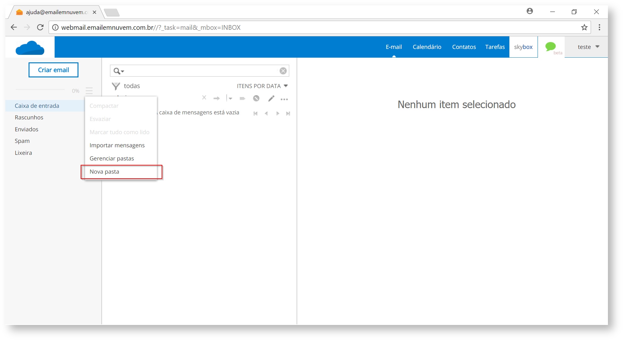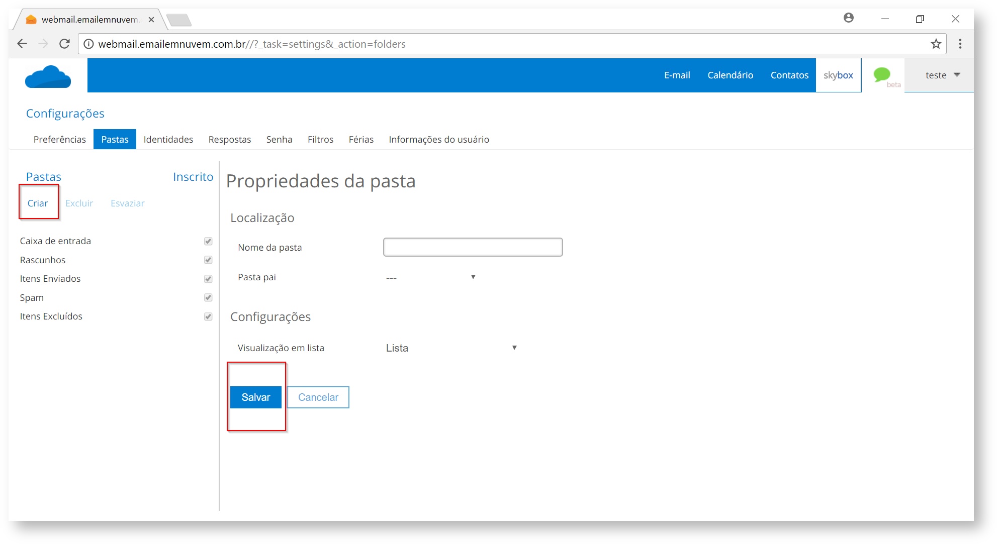 Nessa opção o usuário consegue visualizar e editar todas as pastas do e-mail, além de criar novas pastas: