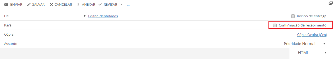- Você pode setar essa opção quando clicar em escrever e-mail ou pode configurar para deixar padrão automatizando para novas mensagens.