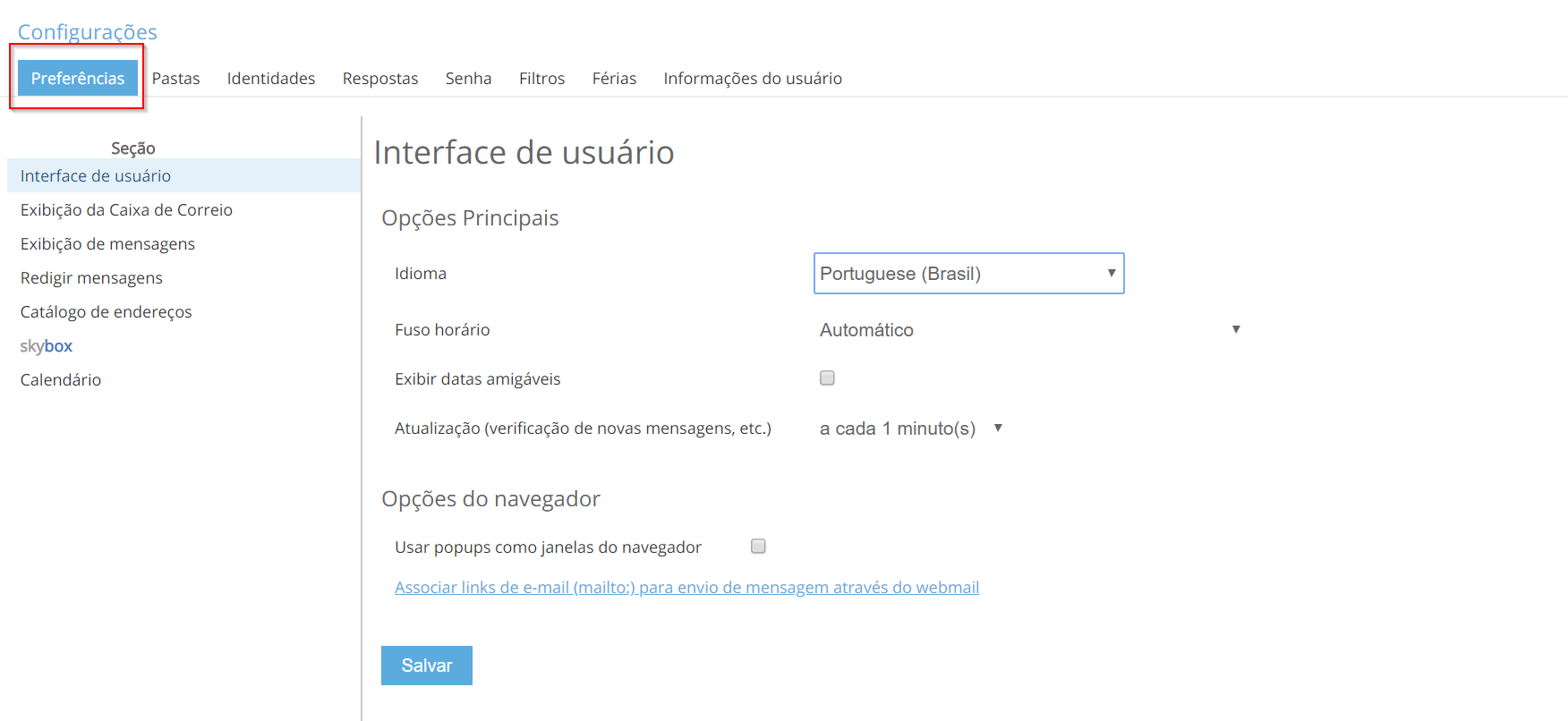 - Vá na aba “Preferências”: