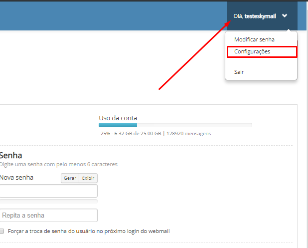 Na parte superior a direita do seu painel, clique sobre seu usuário:
