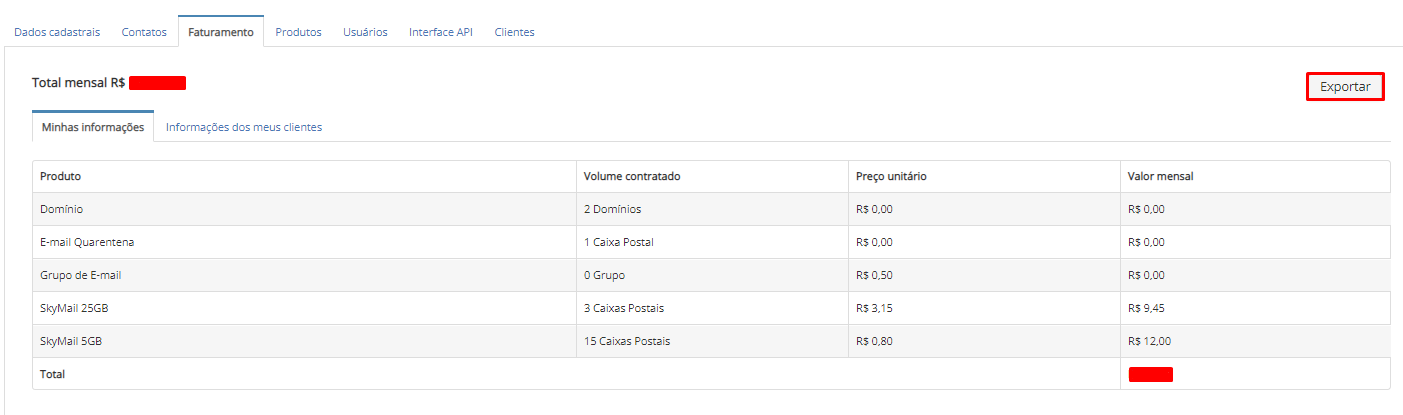 Exportar informações de clientes e produtos do painel