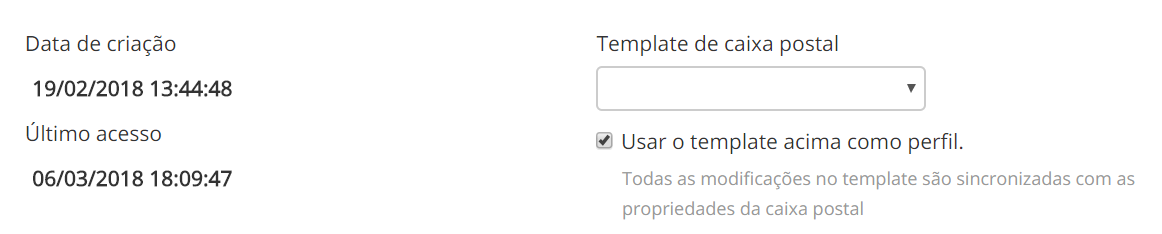 Data de criação: Mostra a data e a hora que a conta foi criada;