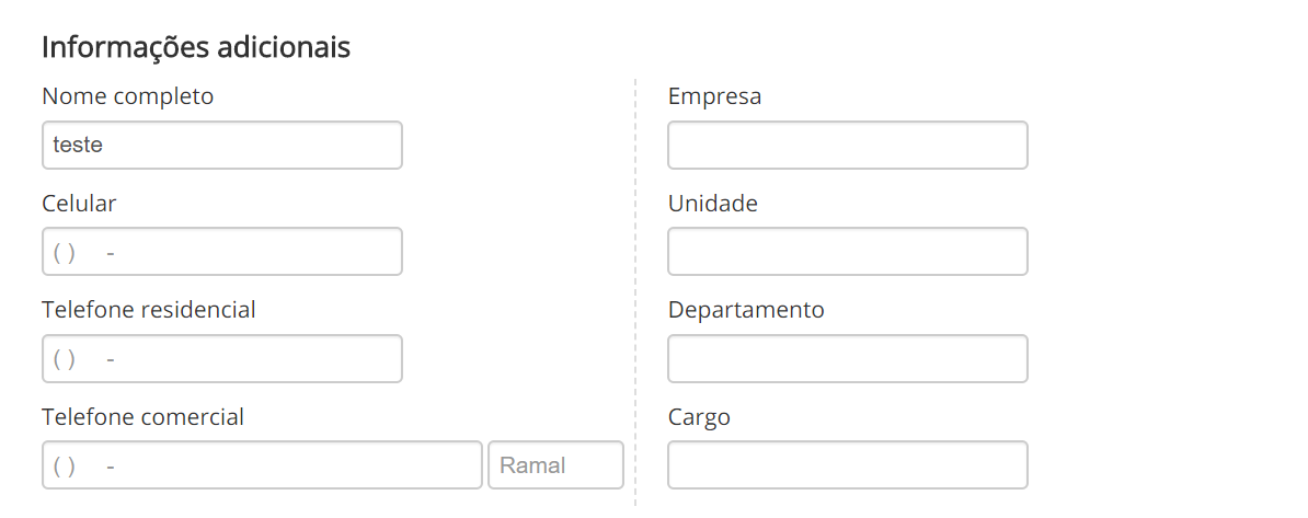 Informações adicionais: Nessa opção, o usuário consegue colocar suas informações pessoais. É recomendado colocá-las, por exemplo, se o usuário quiser, na criação de um grupo, pode filtrar os participantes por “Unidade” ou “Cargo”;