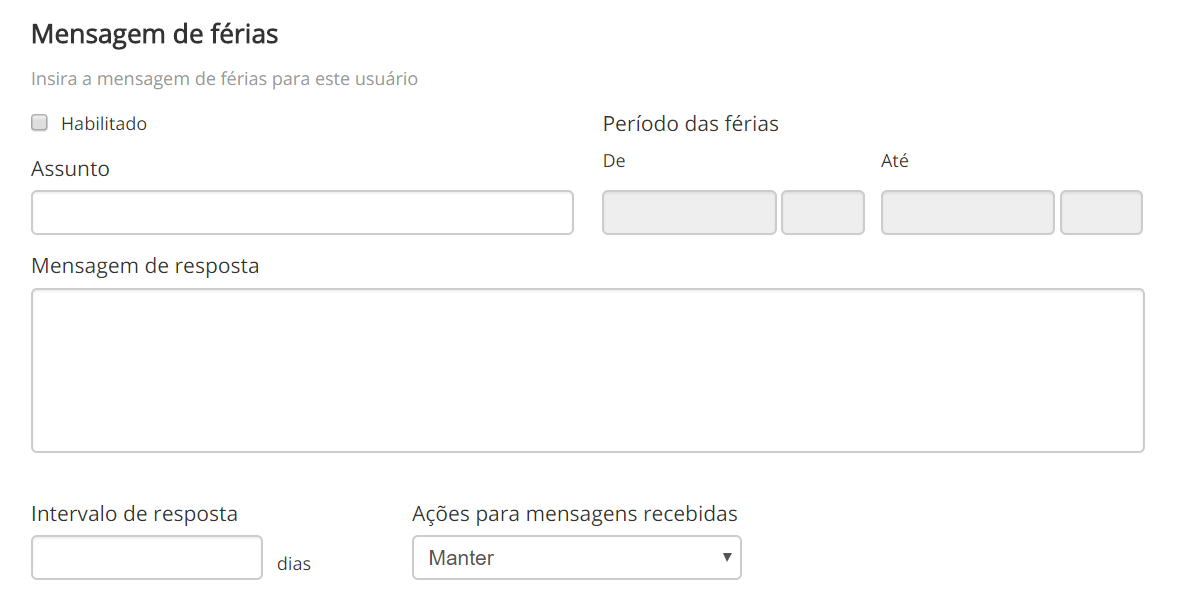 Habilitado: escolhe se quer ativar a mensagem de férias;