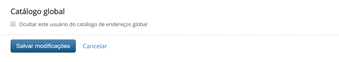Catálogo global: Se selecionada, essa conta não irá aparecer no catálogo de endereços de outras contas.