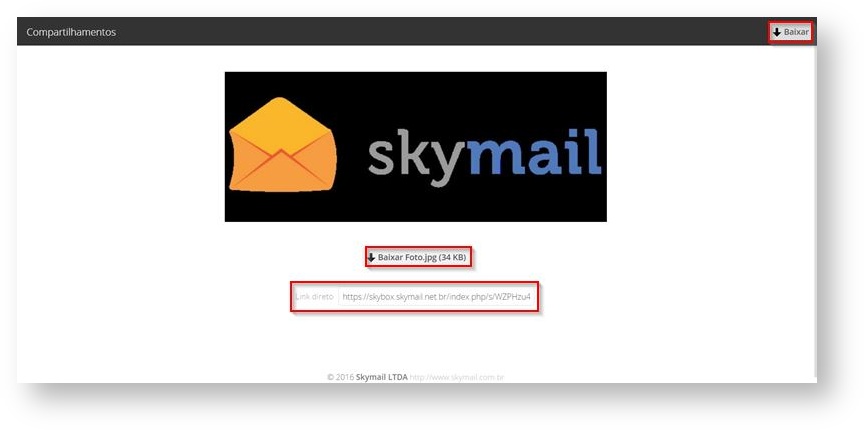 • Quando o destinatário recebe o e-mail, ao clicar no arquivo irá ser encaminhado para uma janela de download: