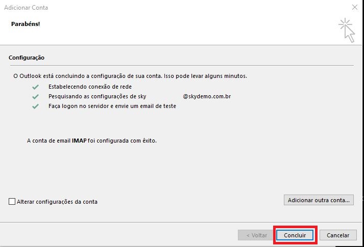 Aguarde carregar todas as configurações e clique em Concluir