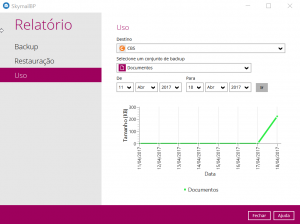 - Na opção “Uso”, você verá quanto que está ocupando de espaço, podendo filtrar essas informações por data e conjuntos de backups: