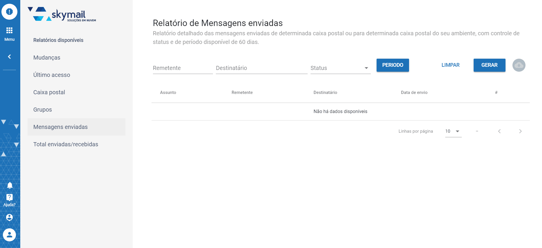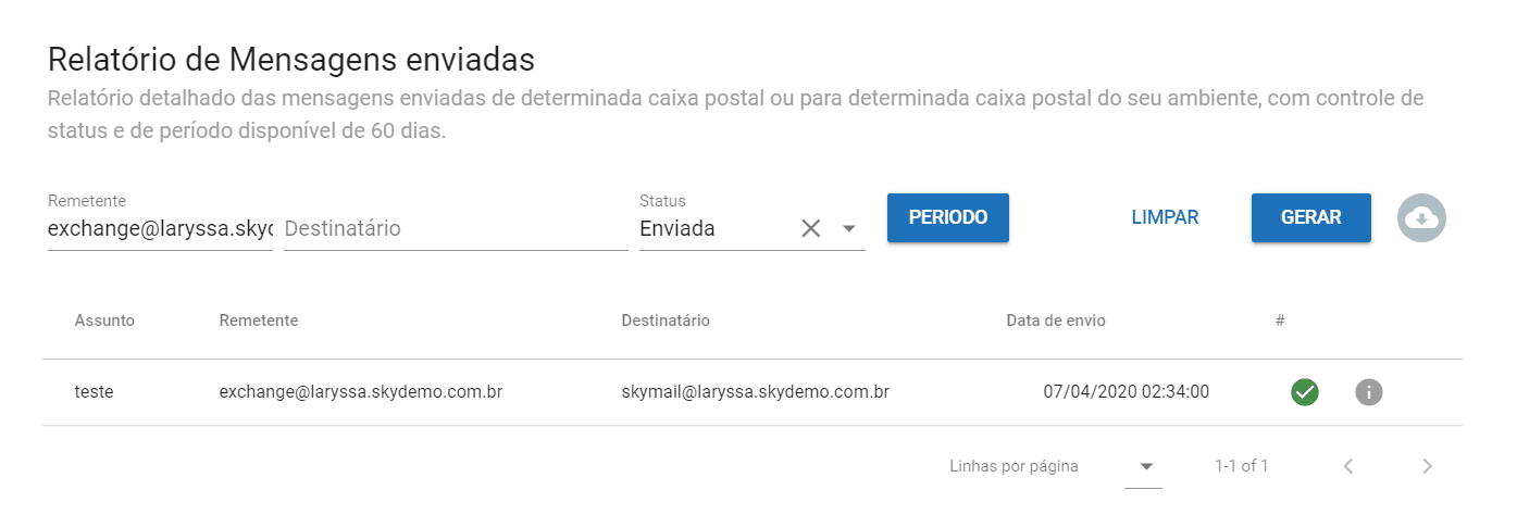 Relatório detalhado das mensagens enviadas de determinada caixa postal ou para determinada caixa postal do seu ambiente, com controle de status e de período disponível de 60 dias.