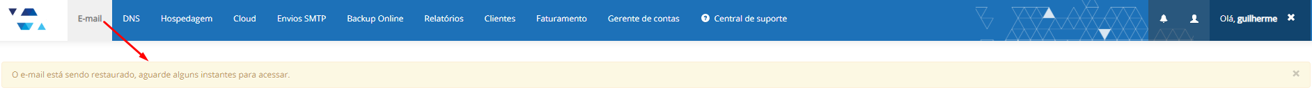 5) Assim que concluir todo o processo, será exibido uma mensagem no topo da página igual a em destaque abaixo, neste caso, o tempo a ser aguardado será de acordo com o tamanho da conta, pedimos que aguarde no mínimo 15 minutos para efetuar todos os testes.