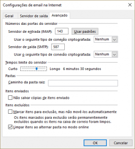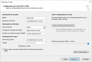 Porta: 587 Autenticar com e mail fornecido pela equipe skymail.
